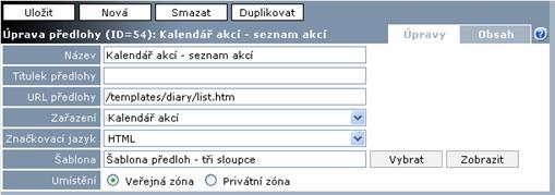 Kalendář akcí - definice předlohy pro seznam akcí ve WebToDate