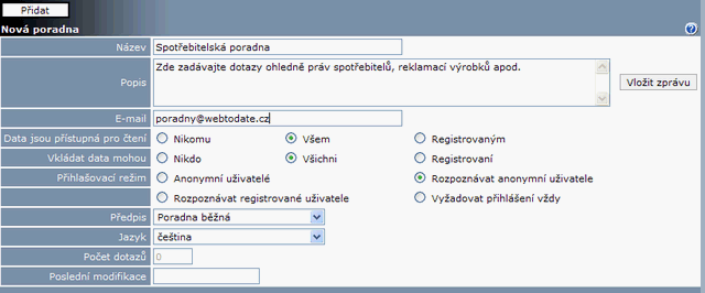 Poradny a rozhovory - založení nové poradny