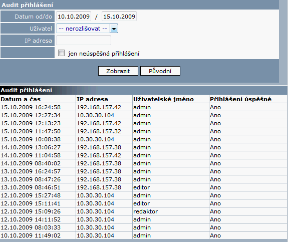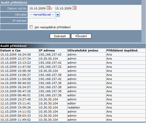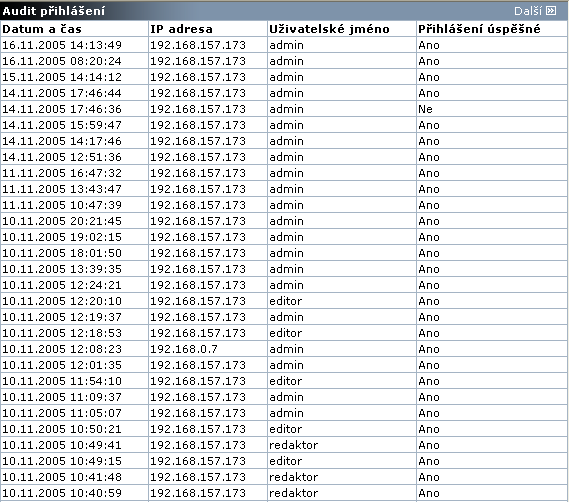| 17. 8. 2009, 21:36 | 569 × 502 (29 KB) | Bajkvl (diskuse | příspěvky) | Category:WebToDate 4.1 Referenční Referenční - Protokoly a audit přihlášení, audit přihlášení |