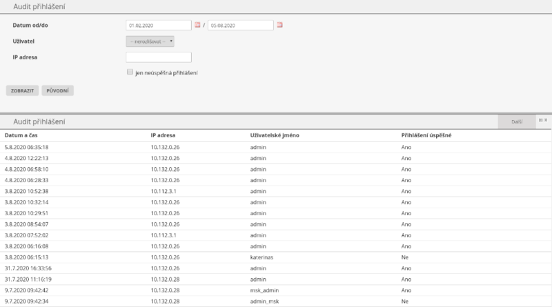 Referenční - Protokoly a audit přihlášení, audit přihlášení