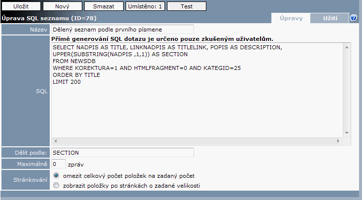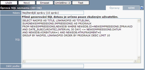 | 24. 2. 2010, 09:28 | 735 × 406 (11 KB) | Jardac (diskuse | příspěvky) | Možnost nastavit stránkování v SQL seznamech | ||