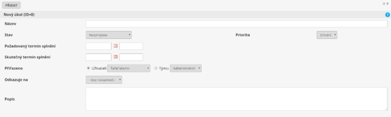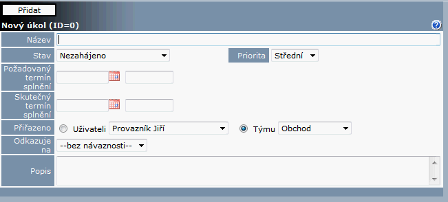 | 5. 6. 2012, 15:54 | 651 × 294 (7 KB) | Jardac (diskuse | příspěvky) | Category:WebToDate Referenční Referenční - úkoly - založení nového úkolu |