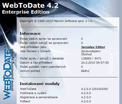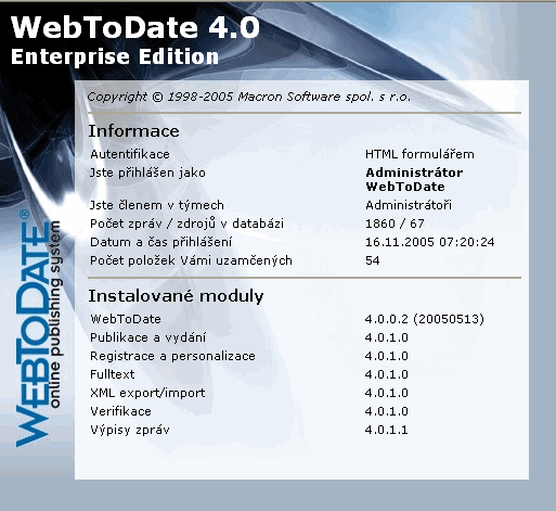 | 17. 8. 2009, 21:30 | 513 × 471 (72 KB) | Bajkvl (diskuse | příspěvky) | Category:WebToDate 4.1 Referenční Referenční - Uživatelé a přístupová práva, úvodní obrazovka WTD |