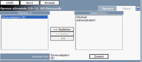 Referenční - Uživatelé a přístupová práva, přiřazení uživatele k týmu