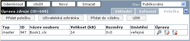 | 17. 8. 2009, 11:10 | 633 × 137 (10 KB) | Bajkvl (diskuse | příspěvky) | Category:WebToDate 4.1 Referenční Referenční - Zdroje, záložka Položky |