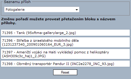 Referenční - Zdroje, úprava pořadí položek pro seznam příloh