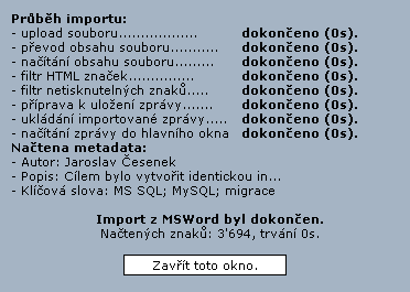 | 17. 8. 2009, 09:37 | 372 × 265 (10 KB) | Bajkvl (diskuse | příspěvky) | Category:WebToDate 4.1 Referenční Referenční - Zprávy, průběh importu |