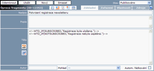 | 13. 8. 2009, 11:56 | 639 × 297 (33 KB) | Bajkvl (diskuse | příspěvky) | Category:WebToDate 4.1 Rozesílání e-mailem Rozesílání e-mailem - úprava fragmentu |