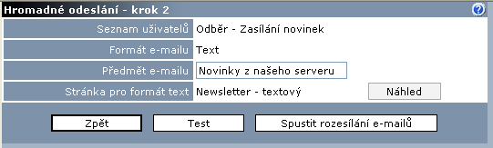 Rozesílání e-mailem - nastavení hromadného odesílání - krok 2