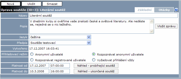 | 13. 8. 2009, 14:42 | 731 × 319 (26 KB) | Bajkvl (diskuse | příspěvky) | Category:WebToDate 4.1 Soutěže Soutěže - úprava soutěže |