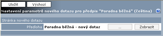 Přejděte do nabídky modulu NastaveníPředpisy – název předpisu – Nový dotaz. V poli Předloha vyberte stránku založenou v předchozím kroku a formulář uložte.