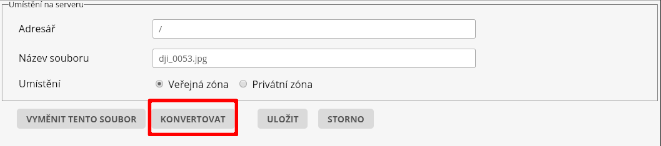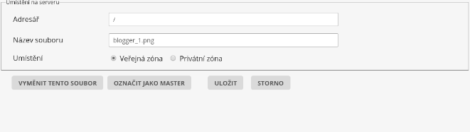 - Adresář – adresář na www serveru, ve kterém bude soubor uložen, fyzické umístění navíc závisí na volbě zóny