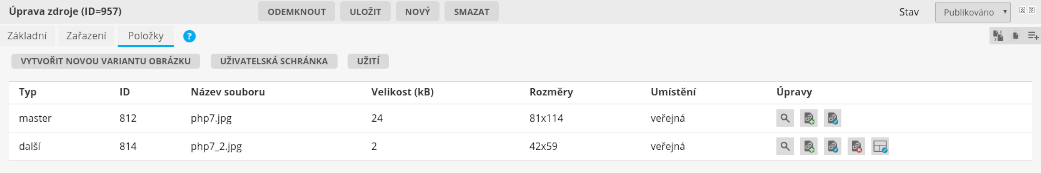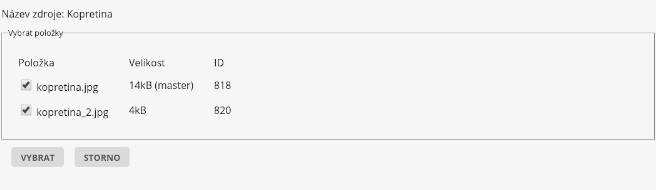- Další varianty – lze přidat libovolný počet další položek jako variant, může jít o zmenšeniny či výřezy obrázku nebo o jiné formáty téhož souboru (master může být např. formát MS Word, další varianta formát PDF apod.)