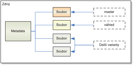 - Pokud se jedná o první soubor vkládaný do zdroje, označí se jako master a případně se k němu vytvoří náhled (pokud se jedná o obrázek)