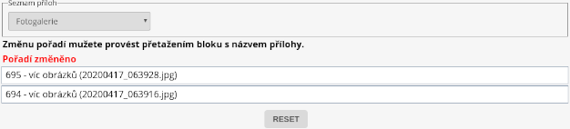 Můžeme potřebovat i připojení stejného souboru dvakrát. Pokud např. chceme připojit ke zprávě PDF soubor a zobrazit jej jak v seznamu souborů ke stažení, tak jako odkaz uprostřed textu zprávy, je potřeba vytvořit dvě instance stejného souboru, jednu připojit k danému druhu seznamu, druhou pod vhodným stylem a klíčové slovo této druhé instance vložit do textu zprávy.