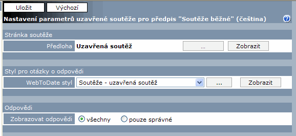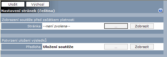 - Potvrzení uložení výsledků – vybírá se předloha u kategorie předloh Soutěže, které se použije pro zobrazení stránky potvrzující účast v soutěži, tj. uložení vyplněných odpovědí.