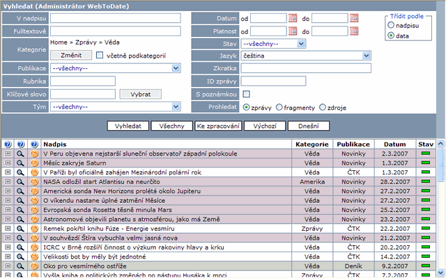 V poli pro popis lze pak použít klíčové slovo <!--WTD_NEWS(xxx)-->, jak je popsáno v kapitole Data.