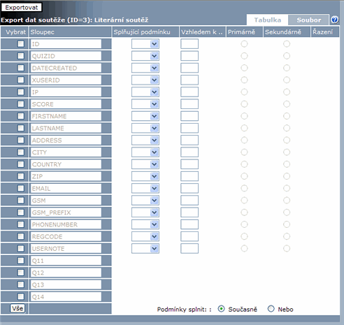 Vyhledávací podmínky se spojují při hledání logickou spojkou "a zároveň".