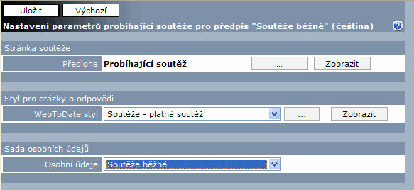 - Probíhající soutěž – definuje grafickou podobu stránky soutěže v aktivním stavu, tj. po dobu platnosti soutěže