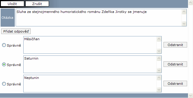 Jednoduchý formulář pro předlohu soutěže v aktivním stavu může tedy vypadat např. následovně: