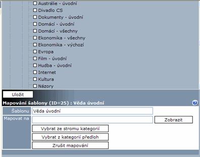 - Výchozí stránka - zvolte zde výchozí stránku vámi vybrané kategorie